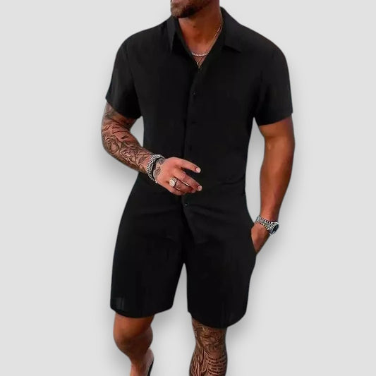 Réduit En stockLe Havre™ | Ensemble chemise et pantalon en coton et lin