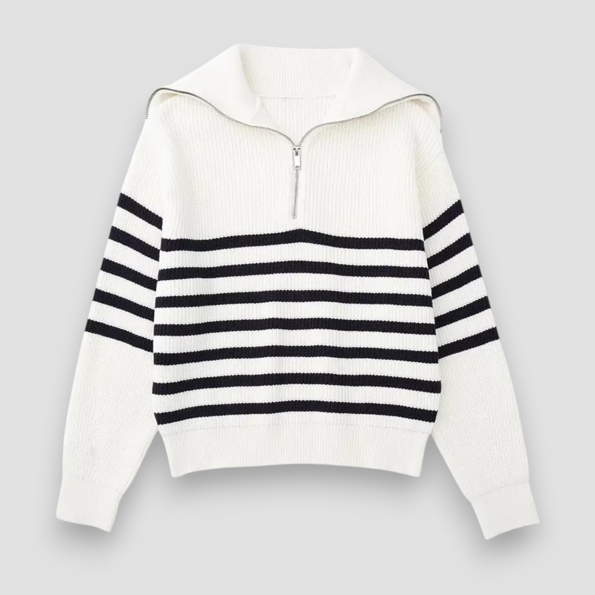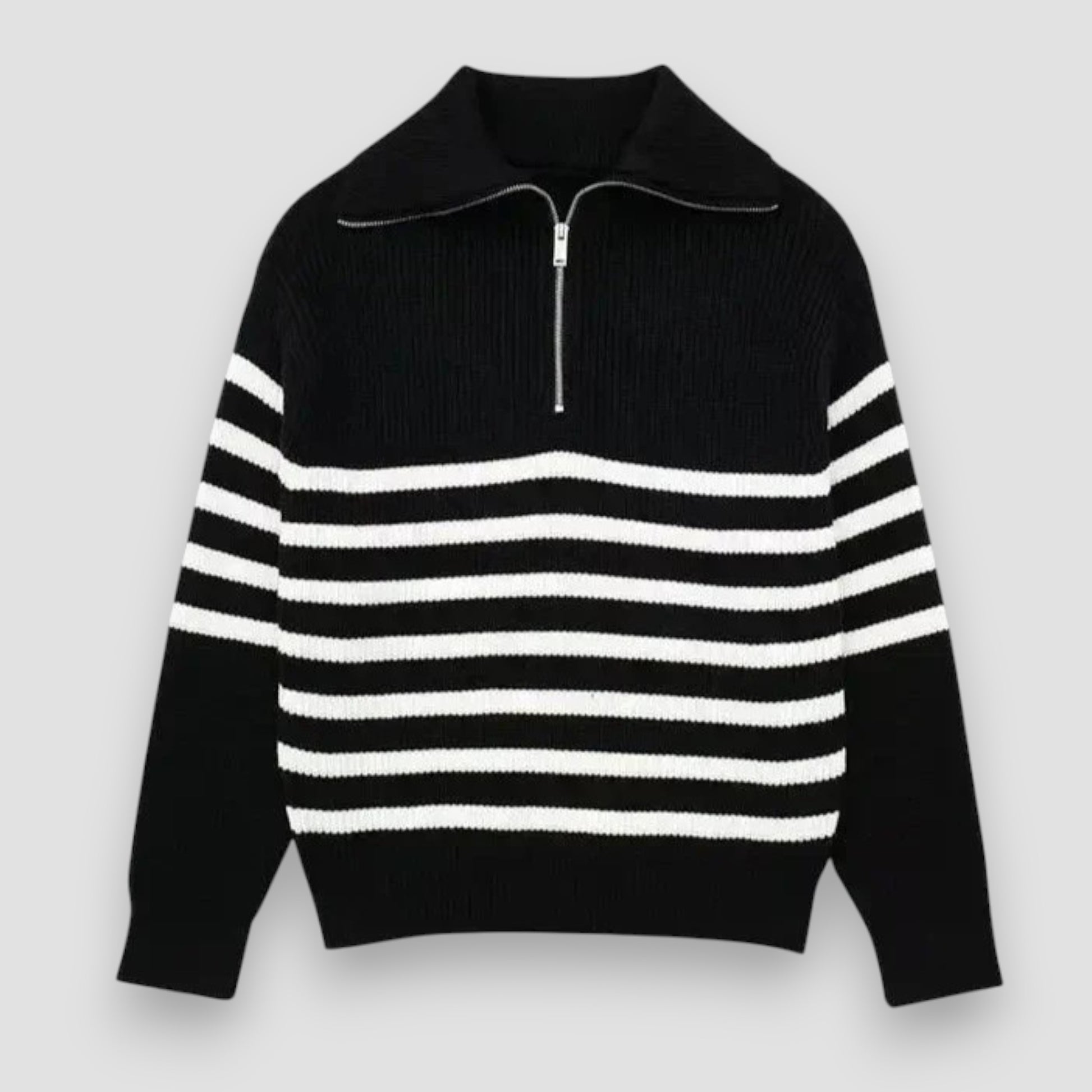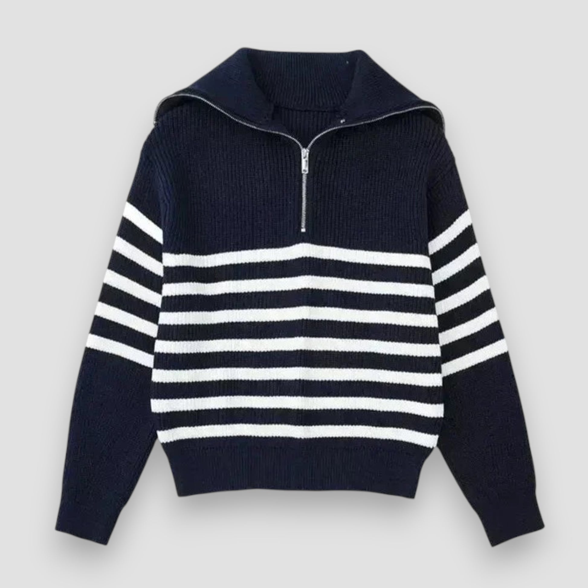Marceau™ | Pull zippé rayé – Élégance Décontractée, Confort au Quotidien